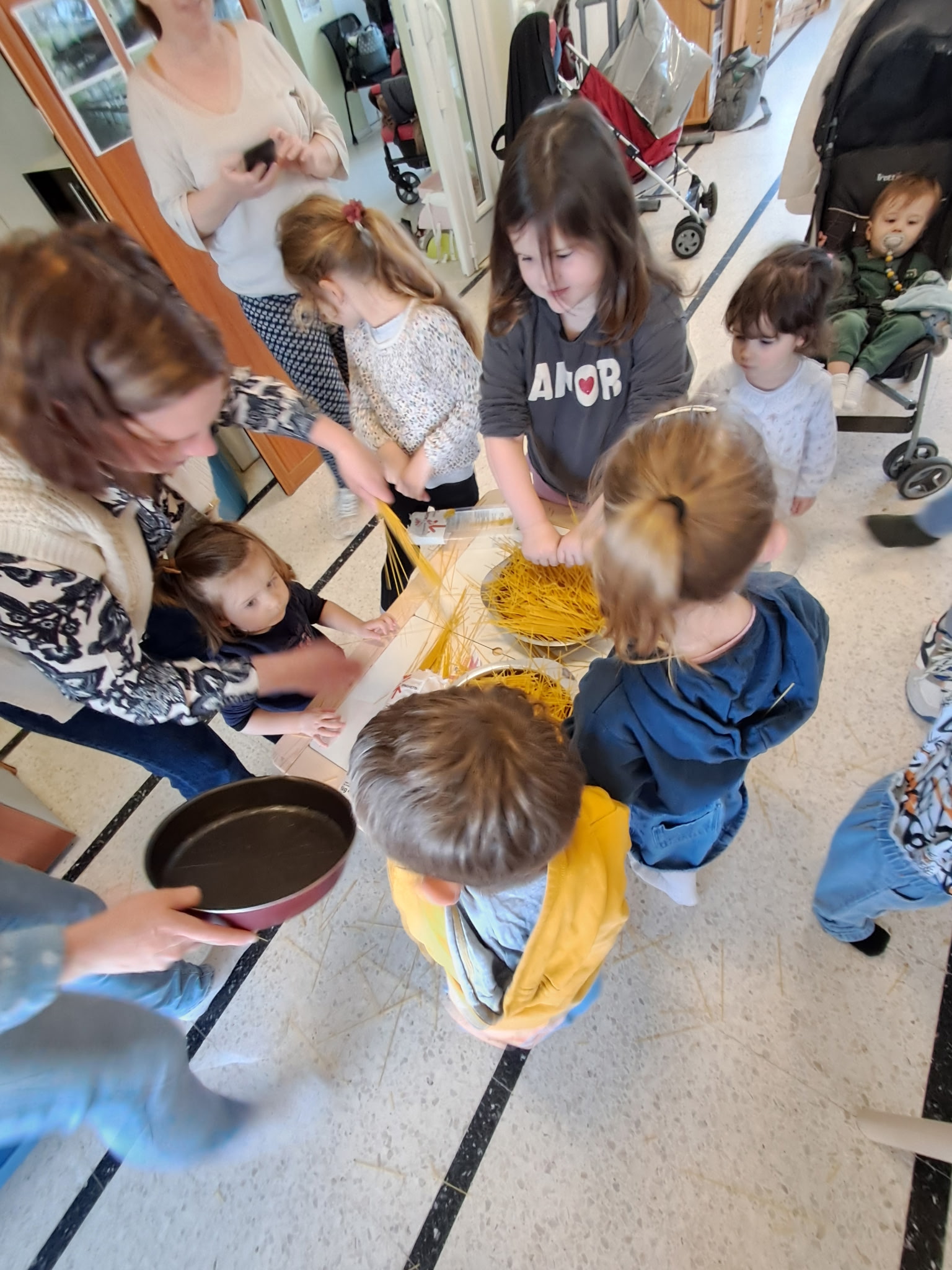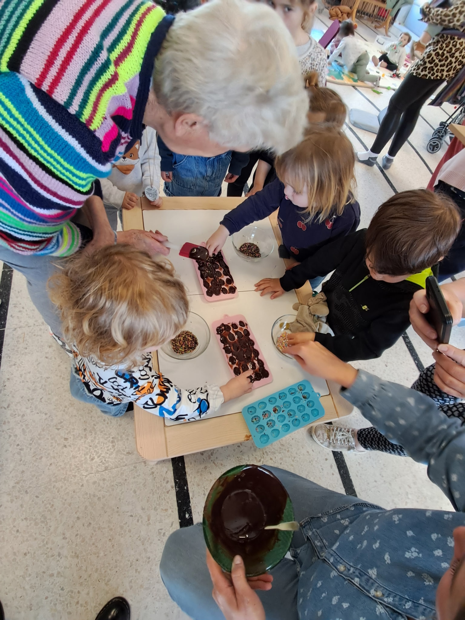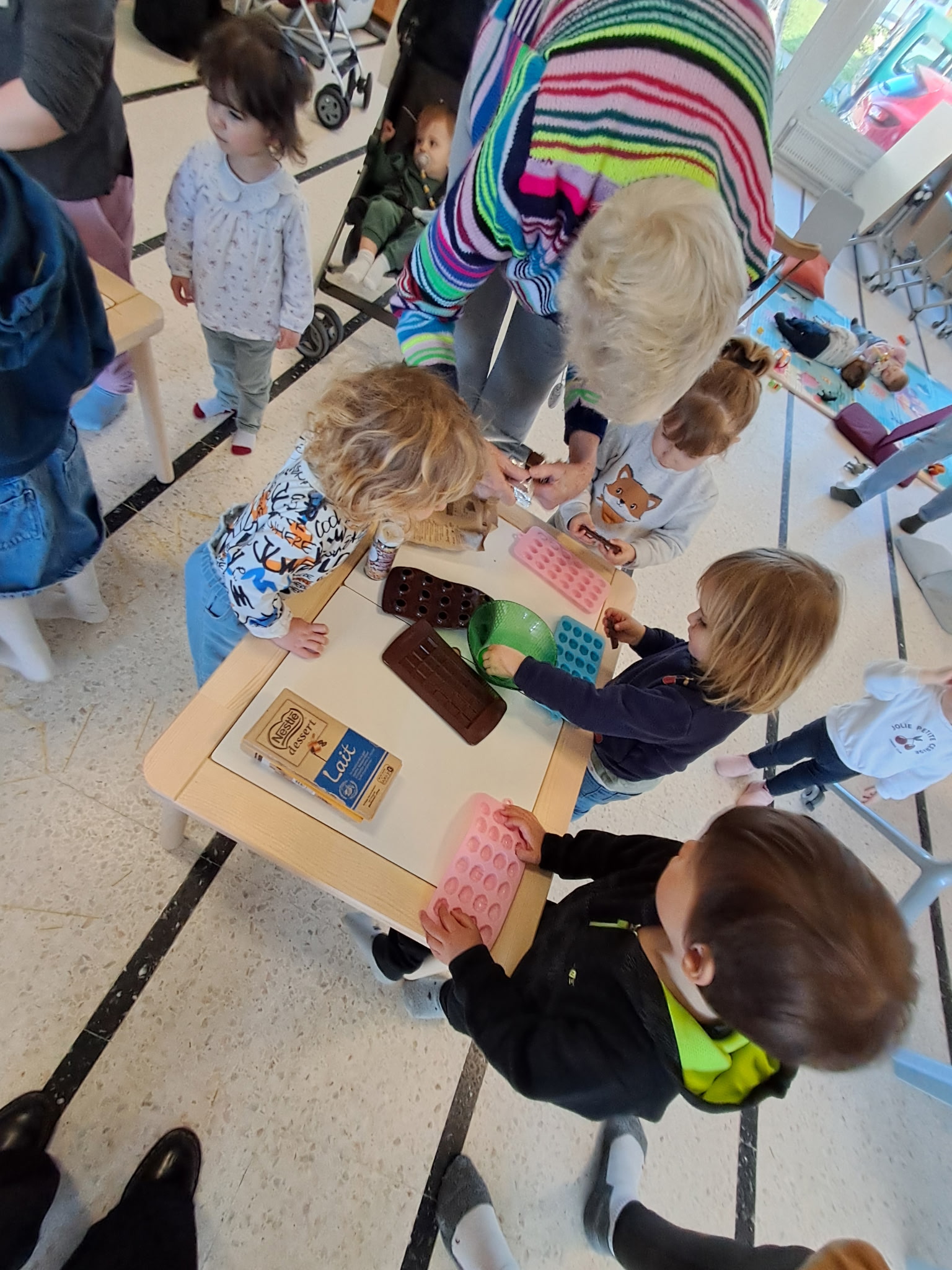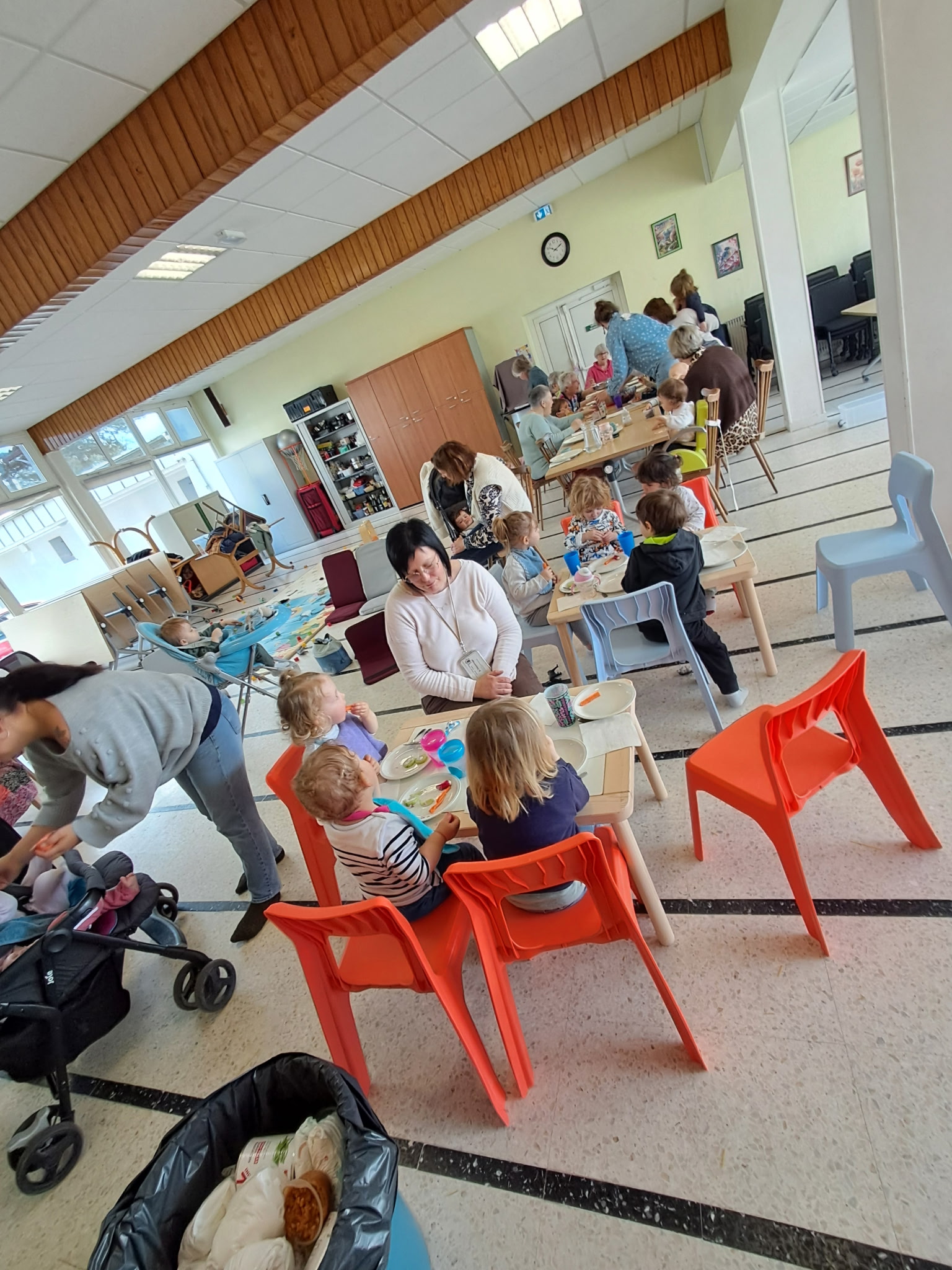 Les séniors et les assistantes maternelles du Relais Petite Enfance se sont réunis pour partager le repas composé des plats préparés lors de l'atelier: un beau moment de partage et d' échanges qui s'est achevé par une dégustation d'œufs en chocolat, très appréciée par tous les gourmands.
